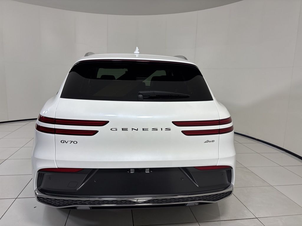 This GV70 is well equipped with Option Group 01, GV70 2.5T Select, 4D Sport Utility, 2.5L DOHC, 8-Speed Automatic with SHIFTRONIC, AWD, Uyuni White, Obsidian Black Artificial Leather, 4-Wheel Disc Brakes, 9 Speakers, ABS brakes, Air Conditioning, Alloy wheels, AM/FM radio: SiriusXM, Android Auto & Apple CarPlay, Anti-whiplash front head restraints, Auto High-beam Headlights, Auto-dimming door mirrors, Auto-dimming Rear-View mirror, Automatic temperature control, Brake assist, Bumpers: body-color, Cargo Block, Cargo Cover, Cargo Net, Cargo Tray, Delay-off headlights, Door Pocket Film, Driver door bin, Driver vanity mirror, Dual front impact airbags, Dual front side impact airbags, Electronic Stability Control, Emergency communication system: Genesis Connected Services, Exterior Parking Camera Rear, First Aid Kit, Four wheel independent suspension, Front anti-roll bar, Front Bucket Seats, Front Center Armrest w/Storage, Front dual zone A/C, Front reading lights, Fully automatic headlights, Garage door transmitter: HomeLink, Heated door mirrors, Heated Front Bucket Seats, Heated front seats, Illuminated entry, Knee airbag, Leather steering wheel, Leatherette Seating Surfaces, Low tire pressure warning, Memory seat, Navigation System, Occupant sensing airbag, Outside temperature display, Overhead airbag, Overhead console, Panic alarm, Passenger door bin, Passenger vanity mirror, Power door mirrors, Power driver seat, Power Liftgate, Power moonroof, Power passenger seat, Power steering, Power windows, Radio: 14.5" Navigation System with AM/FM/HD, Rain sensing wipers, Rear anti-roll bar, Rear reading lights, Rear seat center armrest, Rear window defroster, Rear window wiper, Remote keyless entry, Security system, Speed control, Speed-sensing steering, Speed-Sensitive Wipers, Split folding rear seat, Spoiler, Steering wheel memory, Steering wheel mounted audio controls, Tachometer, Telescoping steering wheel, Tilt steering wheel, Traction control, Trip computer, Turn signal indicator mirrors, Variably intermittent wipers, and Wheels: 19" Light Hyper Silver Alloy plus GV70 2.5T Select, 4D Sport Utility, 2.5L DOHC, 8-Speed Automatic with SHIFTRONIC, AWD, Uyuni White, and Obsidian Black Artificial Leather.
