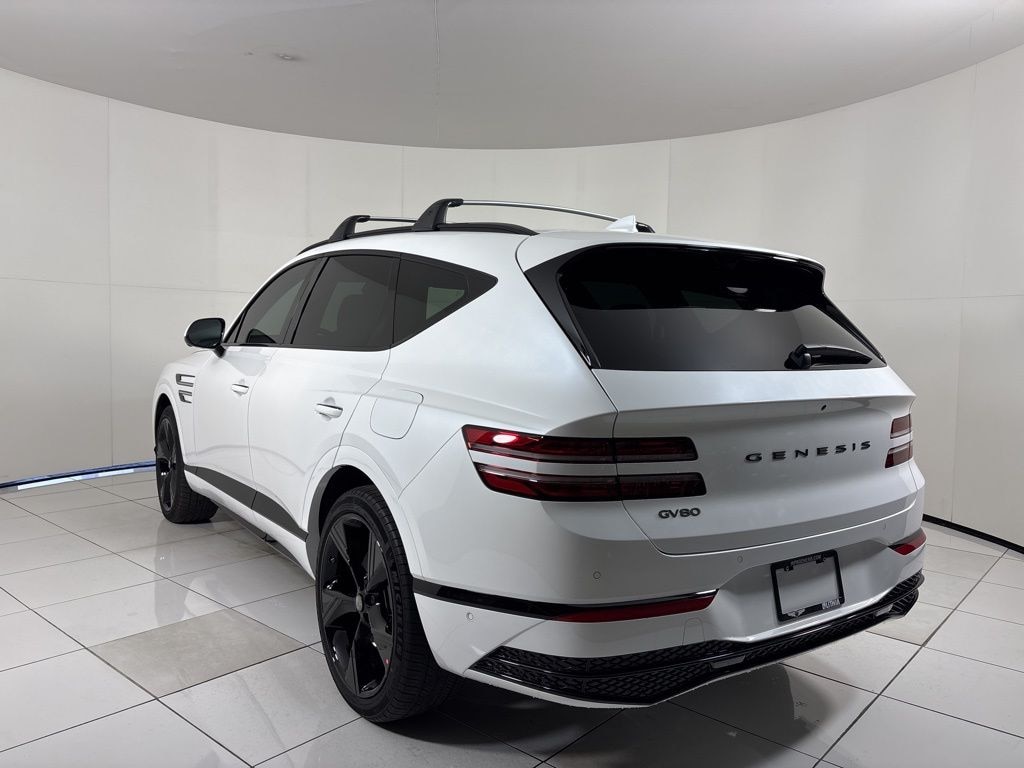 This GV80 is well equipped with Option Group 01, 18 Speakers, 4-Wheel Disc Brakes, ABS brakes, Adaptive suspension, Air Conditioning, Alloy wheels, AM/FM radio: SiriusXM, Anti-whiplash front head restraints, Auto High-beam Headlights, Auto tilt-away steering wheel, Auto-dimming door mirrors, Auto-dimming Rear-View mirror, Automatic temperature control, Brake assist, Cargo Mat, Cargo Net, Compass, Delay-off headlights, Driver door bin, Driver vanity mirror, Dual front impact airbags, Dual front side impact airbags, Electronic Stability Control, Emergency communication system: Genesis Connected Services, Exterior Parking Camera Rear, Four wheel independent suspension, Fragrance Cartridge, Front anti-roll bar, Front Bucket Seats, Front Center Armrest, Front dual zone A/C, Front reading lights, Fully automatic headlights, Garage door transmitter: HomeLink, Genuine wood console insert, Genuine wood dashboard insert, Genuine wood door panel insert, Heads-Up Display, Heated and Ventilated Front Bucket Seats, Heated door mirrors, Heated front seats, Heated rear seats, Heated steering wheel, Illuminated entry, Knee airbag, Leather steering wheel, Low tire pressure warning, Memory seat, Nappa Leather Seating Surfaces, Navigation System, NFC Key Card, Occupant sensing airbag, Outside temperature display, Overhead airbag, Overhead console, Panic alarm, Passenger door bin, Passenger vanity mirror, Power door mirrors, Power driver seat, Power Liftgate, Power moonroof, Power passenger seat, Power steering, Power windows, Radio data system, Radio: AM/FM/HD Bose Premium Sound System, Rain sensing wipers, Rear air conditioning, Rear anti-roll bar, Rear dual zone A/C, Rear reading lights, Rear seat center armrest, Rear side impact airbag, Rear window defroster, Rear window wiper, Remote keyless entry, Security system, Speed control, Speed-sensing steering, Speed-Sensitive Wipers, Split folding rear seat, Spoiler, Steering wheel memory, Steering wheel mounted audio controls, Tachometer, Telescoping steering wheel, Tilt steering wheel, Traction control, Trip computer, Turn signal indicator mirrors, Variably intermittent wipers, Ventilated front seats, Ventilated rear seats, and Wheels: 22" x 9.5J Gloss Black Finish Alloy plus.
