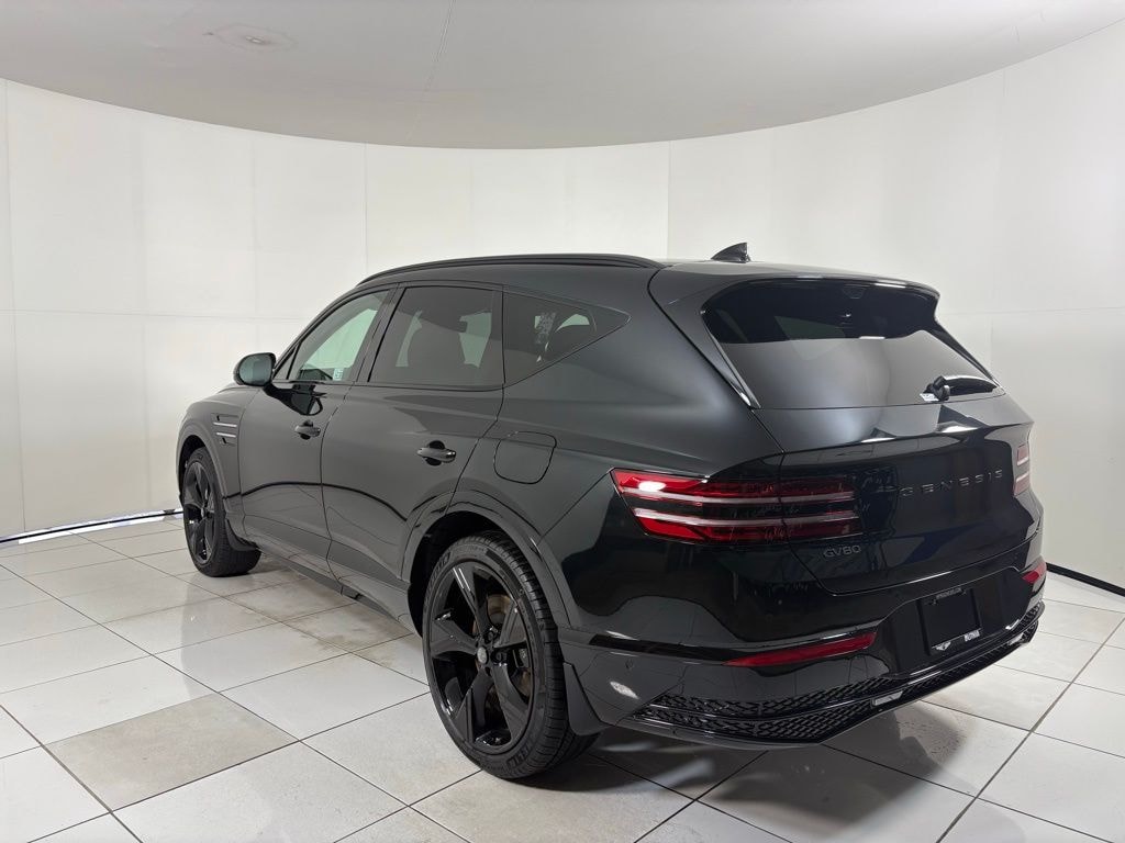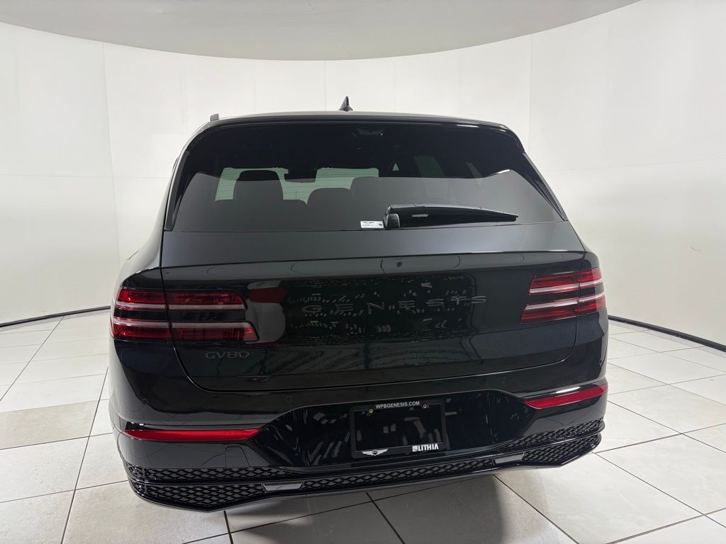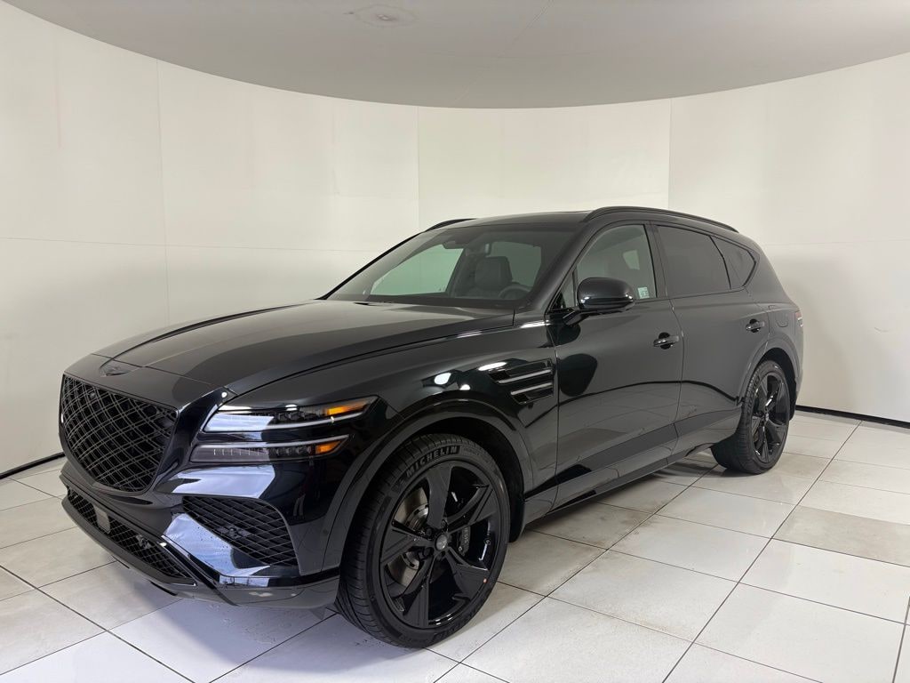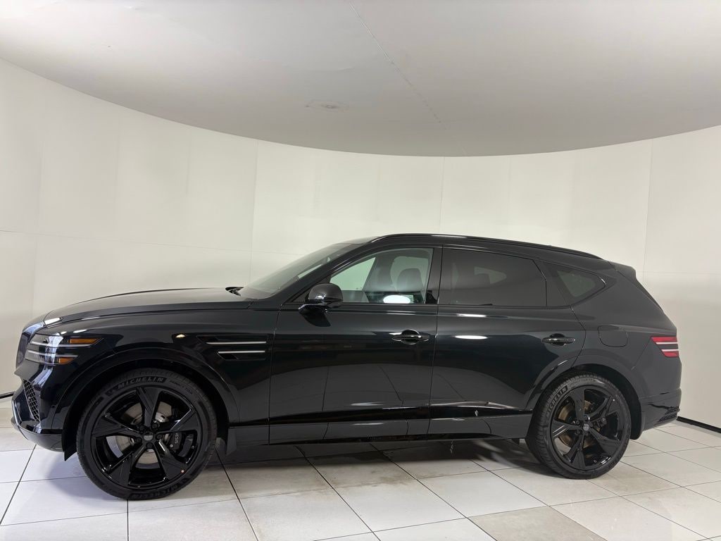 This GV80 is well equipped with Option Group 01, 18 Speakers, 4-Wheel Disc Brakes, ABS brakes, Adaptive suspension, Air Conditioning, All Season Fitted Liners, Alloy wheels, AM/FM radio: SiriusXM, Anti-whiplash front head restraints, Auto High-beam Headlights, Auto tilt-away steering wheel, Auto-dimming door mirrors, Auto-dimming Rear-View mirror, Automatic temperature control, Brake assist, Cargo Blocks, Cargo Mat, Cargo Net, Compass, Delay-off headlights, Driver door bin, Driver vanity mirror, Dual front impact airbags, Dual front side impact airbags, Electronic Stability Control, Emergency communication system: Genesis Connected Services, Exterior Parking Camera Rear, First Aid Kit, Four wheel independent suspension, Fragrance Cartridge, Front and Rear Mudguards, Front anti-roll bar, Front Bucket Seats, Front Center Armrest, Front dual zone A/C, Front reading lights, Fully automatic headlights, Garage door transmitter: HomeLink, Genuine wood console insert, Genuine wood dashboard insert, Genuine wood door panel insert, Heads-Up Display, Heated and Ventilated Front Bucket Seats, Heated door mirrors, Heated front seats, Heated rear seats, Heated steering wheel, Illuminated entry, Knee airbag, Leather steering wheel, Low tire pressure warning, Memory seat, Nappa Leather Seating Surfaces, Navigation System, NFC Key Card, Occupant sensing airbag, Outside temperature display, Overhead airbag, Overhead console, Panic alarm, Passenger door bin, Passenger vanity mirror, Power door mirrors, Power driver seat, Power Liftgate, Power moonroof, Power passenger seat, Power steering, Power windows, Radio data system, Radio: AM/FM/HD Bose Premium Sound System, Rain sensing wipers, Rear air conditioning, Rear anti-roll bar, Rear reading lights, Rear seat center armrest, Rear side impact airbag, Rear window defroster, Rear window wiper, Remote keyless entry, Security system, Speed control, Speed-sensing steering, Speed-Sensitive Wipers, Split folding rear seat, Spoiler, Steering wheel memory, Steering wheel mounted audio controls, Tachometer, Telescoping steering wheel, Tilt steering wheel, Traction control, Trip computer, Turn signal indicator mirrors, Variably intermittent wipers, Ventilated front seats, Ventilated rear seats, and Wheels: 22" x 9.5J Gloss Black Finish Alloy plus.