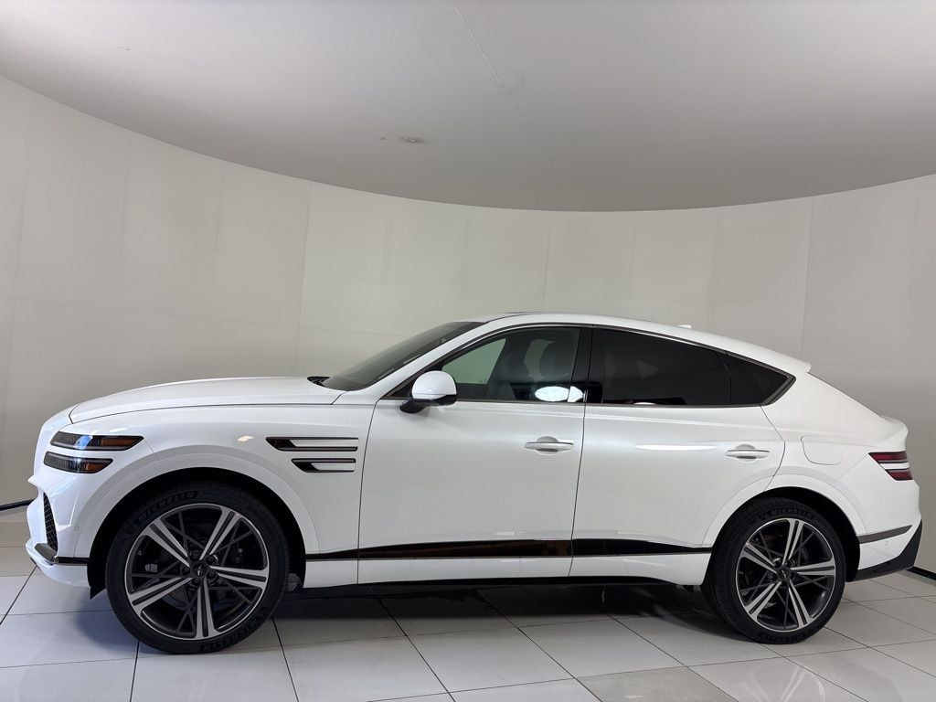 This GV80 Coupe is well equipped with Option Group 01, GV80 Coupe 3.5T e-SC, 4D Sport Utility, 3.5L V6, 8-Speed Automatic, AWD, Uyuni White, Ultramarine Blue W/Orange Leather, 18 Speakers, 4-Wheel Disc Brakes, ABS brakes, Adaptive suspension, Air Conditioning, Alloy wheels, AM/FM radio: SiriusXM, Android Auto & Apple CarPlay, Anti-whiplash front head restraints, Auto High-beam Headlights, Auto tilt-away steering wheel, Auto-dimming door mirrors, Auto-dimming Rear-View mirror, Automatic temperature control, Brake assist, Bumpers: body-color, Compass, Delay-off headlights, Driver door bin, Driver vanity mirror, Dual front impact airbags, Dual front side impact airbags, Electronic Stability Control, Emergency communication system: Genesis Connected Services, Exterior Parking Camera Rear, Four wheel independent suspension, Front anti-roll bar, Front Bucket Seats, Front Center Armrest, Front dual zone A/C, Front reading lights, Fully automatic headlights, Garage door transmitter: HomeLink, Heads-Up Display, Heated and Ventilated Multi-Adjustable Front Bucket Seats, Heated door mirrors, Heated front seats, Heated rear seats, Heated steering wheel, Illuminated entry, Knee airbag, Low tire pressure warning, Memory seat, Nappa Leather Seating Surfaces, Navigation System, Occupant sensing airbag, Outside temperature display, Overhead airbag, Overhead console, Panic alarm, Passenger door bin, Passenger vanity mirror, Power door mirrors, Power driver seat, Power Liftgate, Power moonroof, Power passenger seat, Power steering, Power windows, Radio data system, Radio: AM/FM/HD Bang & Olufsen Premium Audio, Rain sensing wipers, Rear air conditioning, Rear anti-roll bar, Rear reading lights, Rear seat center armrest, Rear side impact airbag, Rear window defroster, Remote keyless entry, Security system, Speed control, Speed-sensing steering, Speed-Sensitive Wipers, Split folding rear seat, Spoiler, Sport steering wheel, Steering wheel memory, Steering wheel mounted audio controls, Tachometer, Telescoping steering wheel, Tilt steering wheel, Traction control, Trip computer, Turn signal indicator mirrors, Variably intermittent wipers, Ventilated front seats, Ventilated rear seats, and Wheels: 22" x 9.5J Dark Gray Matte Sport Alloy plus GV80 Coupe 3.5T e-SC, 4D Sport Utility, 3.5L V6, 8-Speed Automatic, AWD, Uyuni White, and Ultramarine Blue W/Orange Leather.