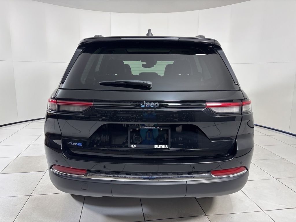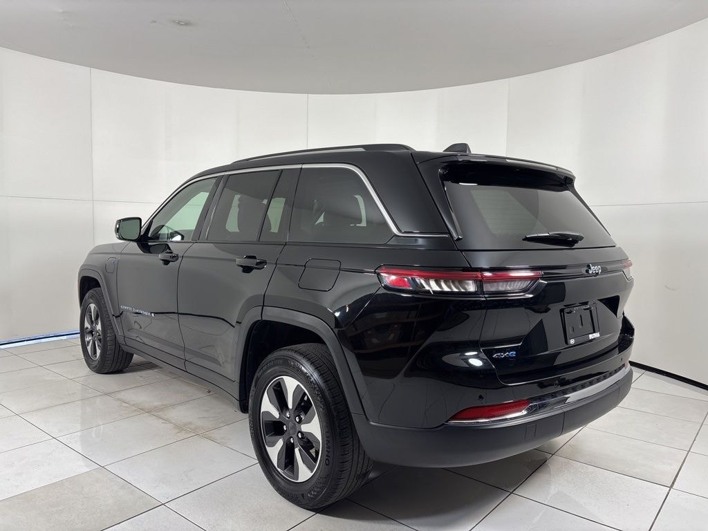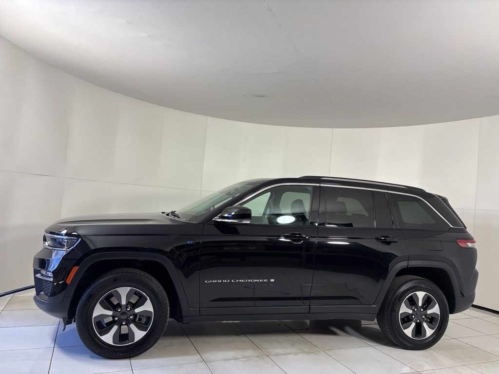 This Grand Cherokee is well equipped with Quick Order Package 27F, Grand Cherokee 4xe Base, 4D Sport Utility, 2.0L I4 DOHC, 8-Speed Automatic, 4WD, Diamond Black Crystal Pearlcoat, Global Black Artificial Leather, 10 Speakers, 3.70 Rear Axle Ratio, 4-Wheel Disc Brakes, ABS brakes, Air Conditioning, Alloy wheels, AM/FM radio: SiriusXM with 360L, Anti-whiplash front head restraints, Audio memory, Auto High-beam Headlights, Automatic temperature control, Brake assist, Bumpers: body-color, Capri Leatherette Seats, Compass, Delay-off headlights, Driver door bin, Driver vanity mirror, Dual front impact airbags, Dual front side impact airbags, Electronic Stability Control, Four wheel independent suspension, Front anti-roll bar, Front Bucket Seats, Front Center Armrest w/Storage, Front dual zone A/C, Front fog lights, Front License Plate Bracket, Front reading lights, Fully automatic headlights, Garage door transmitter, Heated door mirrors, Heated front seats, Heated rear seats, Heated steering wheel, Heavy Duty Suspension, Illuminated entry, Knee airbag, Low tire pressure warning, Memory seat, Navigation System, Occupant sensing airbag, Outside temperature display, Overhead airbag, Overhead console, Panic alarm, ParkView Rear Back-Up Camera, Passenger door bin, Passenger vanity mirror, Power door mirrors, Power driver seat, Power Liftgate, Power moonroof, Power passenger seat, Power steering, Power windows, Radio data system, Radio: Uconnect 5 Nav w/10.1" Display, Rear anti-roll bar, Rear reading lights, Rear window defroster, Rear window wiper, Remote keyless entry, Security system, Speed control, Speed-Sensitive Wipers, Split folding rear seat, Spoiler, Steering wheel mounted audio controls, Tachometer, Telescoping steering wheel, Tilt steering wheel, Traction control, Trip computer, Turn signal indicator mirrors, Variably intermittent wipers, Voltmeter, and Wheels: 18" x 8" Fully Painted Aluminum plus Quick Order Package 27F, Grand Cherokee 4xe Base, 4D Sport Ut