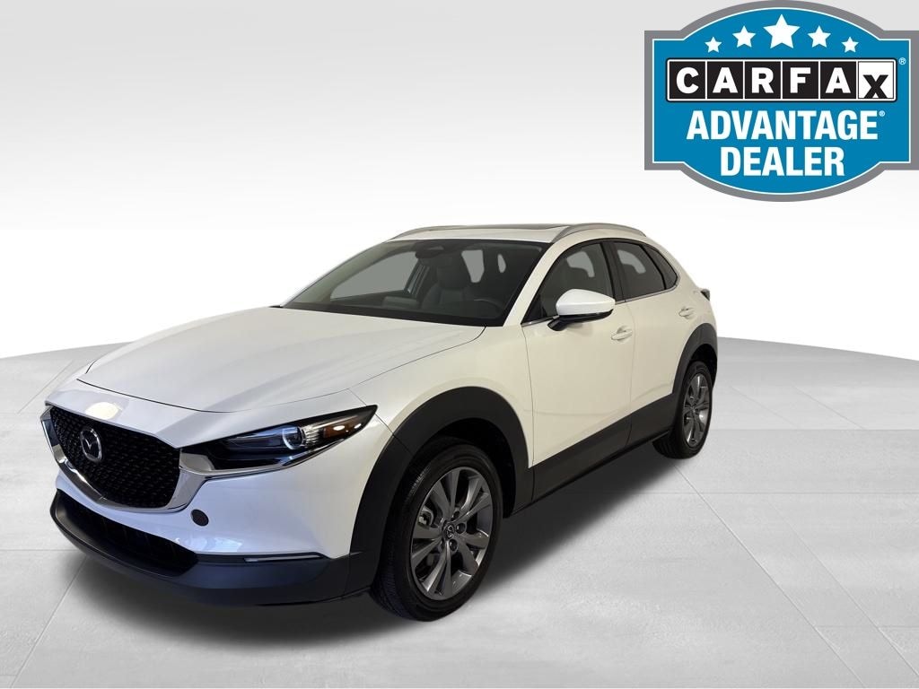 Snowflake White Pearl Mica 2024 Mazda CX-30 4D Sport Utility 2.5 S Preferred Package AWD SKYACTIV® 2.5L 4-Cylinder DOHC 16V Odometer is 8137 miles below market average! CX-30 2.5 S Preferred Package, 4D Sport Utility, SKYACTIV® 2.5L 4-Cylinder DOHC 16V, 6-Speed Automatic, AWD, Snowflake White Pearl Mica, Black Premium Synthetic, 4-Wheel Disc Brakes, 4.095 Axle Ratio, 6 Speakers, ABS brakes, Air Conditioning, Alloy wheels, AM/FM radio, AppLink/Apple CarPlay and Android Auto, Auto High-beam Headlights, Automatic temperature control, Brake assist, Bumpers: body-color, Compass, Delay-off headlights, Driver door bin, Driver vanity mirror, Dual front impact airbags, Dual front side impact airbags, Electronic Stability Control, Emergency communication system: Mazda Connected Services (3-year complimentary trial included), Exterior Parking Camera Rear, Front anti-roll bar, Front Bucket Seats, Front Center Armrest, Front dual zone A/C, Front reading lights, Front wheel independent suspension, Fully automatic headlights, Heated door mirrors, Heated Front Bucket Seats, Heated front seats, Illuminated entry, Knee airbag, Leather Shift Knob, Leather steering wheel, Leatherette Seat Trim, Low tire pressure warning, MAZDA CONNECT Infotainment System, Memory seat, Occupant sensing airbag, Outside temperature display, Overhead airbag, Overhead console, Panic alarm, Passenger door bin, Passenger vanity mirror, Power door mirrors, Power driver seat, Power moonroof, Power steering, Power windows, Radio data system, Radio: AM/FM Audio System, Rain sensing wipers, Rear seat center armrest, Rear side impact airbag, Rear window defroster, Rear window wiper, Remote keyless entry, Snowflake White Pearl Mica Paint Charge, Speed control, Speed-sensing steering, Split folding rear seat, Spoiler, Stainless Steel Rear Bumper Guard, Steering wheel mounted audio controls, Tachometer, Telescoping steering wheel, Tilt steering wheel, Traction control, Trip computer, Turn signal indicator mirrors, Variably intermittent wipers, Wheels: 18" x 7J Aluminum Alloy.